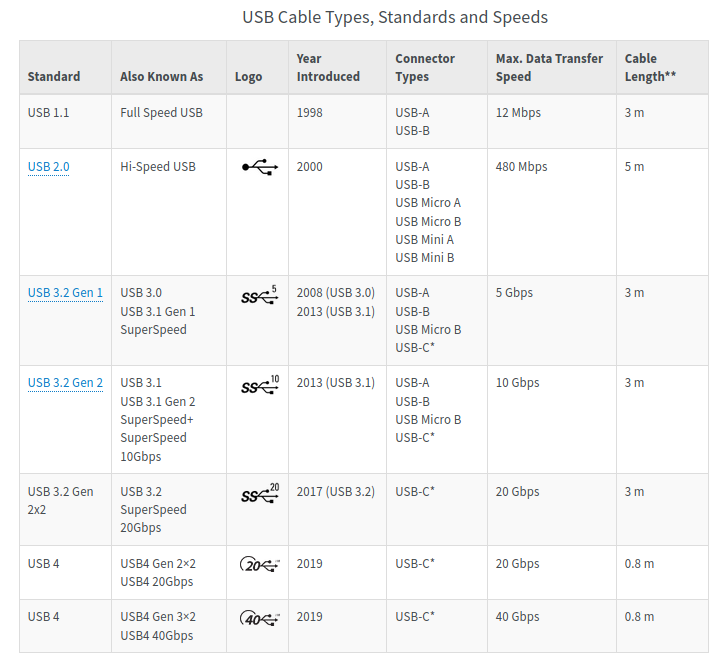 | Thunderbolt | 10 Gbps (1250 Mo/s) | 5 m |